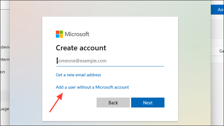 Step 5: Choose 'Add a user without a Microsoft account' to proceed.