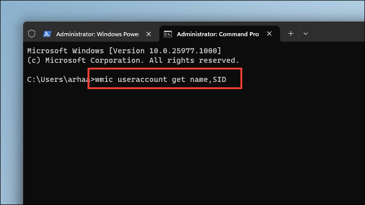 Step 17: Note down the SID (Security Identifier) associated with your original user account.
