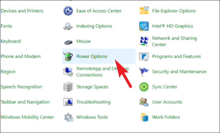 Step 5: In Control Panel, click on Power Options.