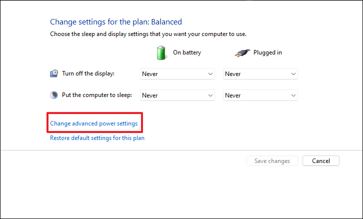 Step 7: Select Change advanced power settings to open a new window.