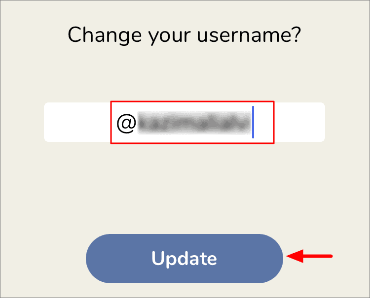 After you have entered the new username, tap on ‘Update’ at the bottom.