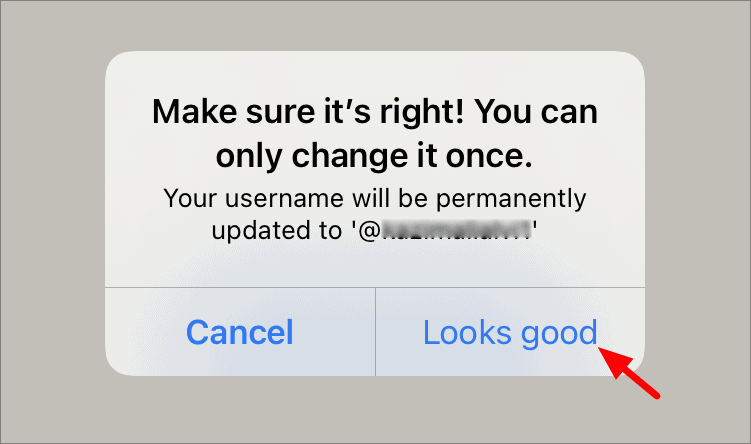A confirmation box will pop up on the screen and inform you that the username change is final and further changes cannot be made to it. If you want to proceed with the new username, tap on ‘Looks good’.