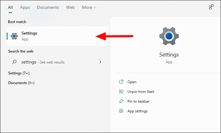 - Press the Windows key and type "Settings", then click on the app to open it.