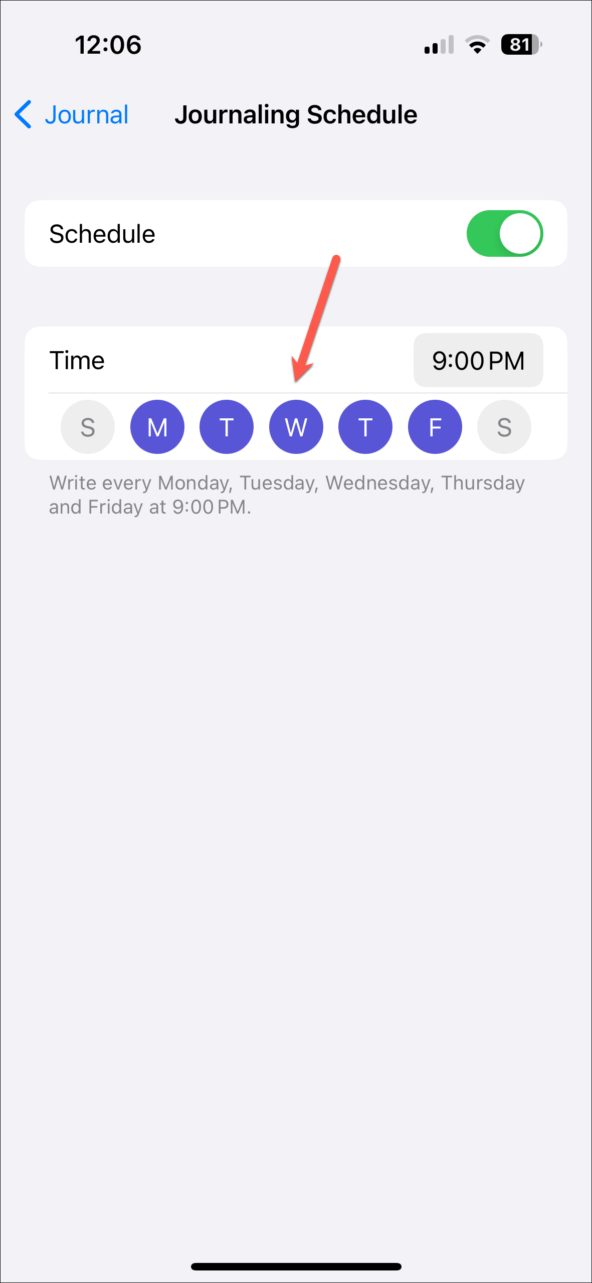 And that's it. You will now receive notifications prompting you to journal according to the new schedule.