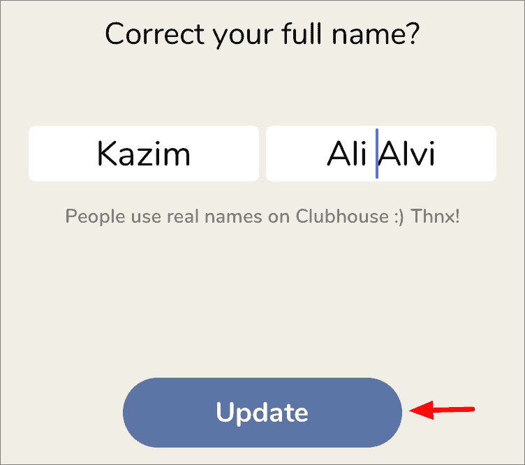 After you have changed your name, tap on ‘Update’ at the bottom.