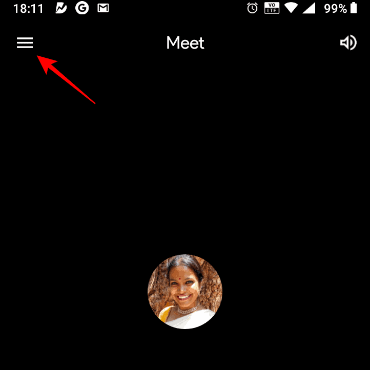 Open the Meet app on your phone, and tap on the three-bar menu button at the top-left corner of the screen.