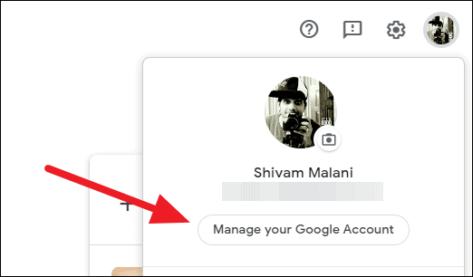 If you’re on your desktop/laptop, go to meet.google.com and sign in with your Google account. Then, click on your profile picture (or your name initial) at the top-right corner of the screen and click on the ‘Manage your Google Account’ button.