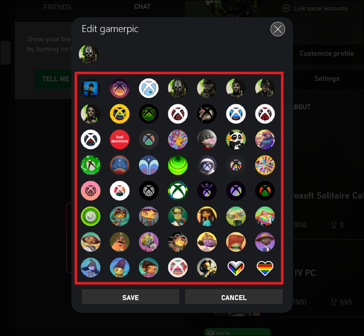 Step 5: In the overlay window, browse through the collection of available gamer pics by scrolling down. Once you find an icon that you like, click on it to select it. After selecting your new gamer pic, click the Save button to apply the changes. Keep in mind that while the change is saved instantly, it may take up to 48 hours for the new picture to sync across all Xbox systems.