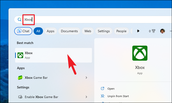 Step 1: Open the Start Menu on your Windows 11 PC and type Xbox in the search bar. Click on the Xbox app from the search results to launch it.