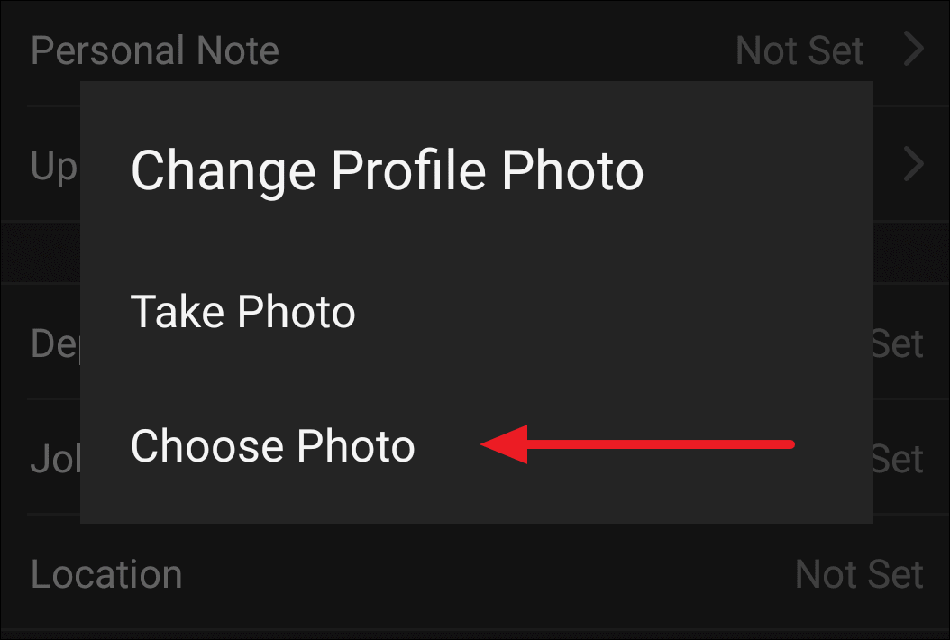 On selecting, ‘Profile Photo’ option, the ‘Change Profile Photo’ pop-up will appear on the screen. Select ‘Choose Photo’ from the available options.
