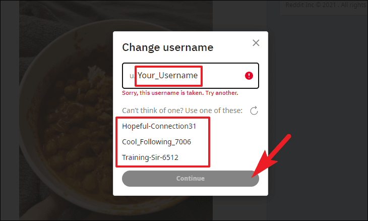 After that, you can either type in your preferred choice of the username in the text box or you could select one from the suggestions. If the entered username is available, click on the ‘Continue’ button to change the username.