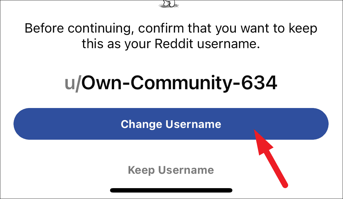 The prompt will ask you to either change the username or keep the one you have been currently assigned. Tap on the ‘Change Username’ option present on the prompt.