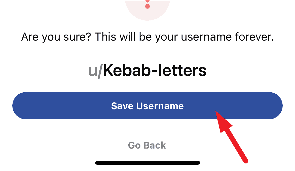 Finally, tap on the ‘Save Username’ button present on the prompt to confirm your changes.