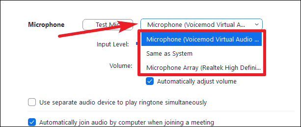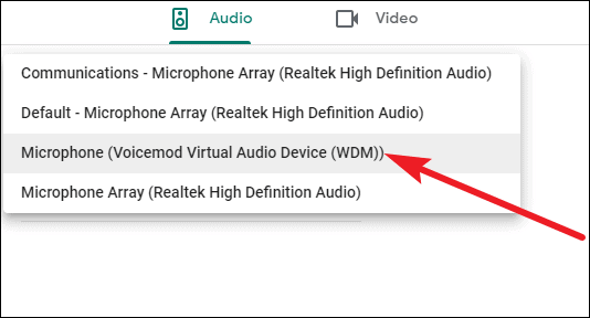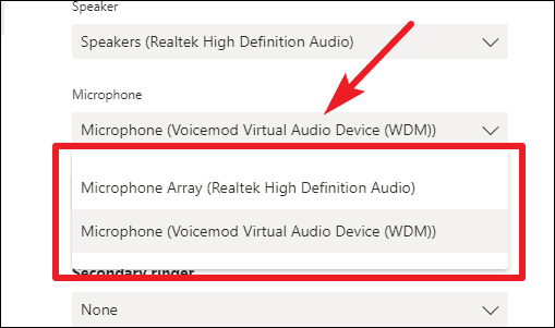 Step 4: Click on the drop-down menu next to Microphone and choose Microphone (Voicemod Virtual Audio Device) from the options.
