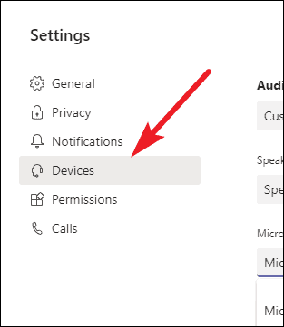 Step 3: In the settings dialog, go to the Audio section. Click on the drop-down menu next to Microphone.
