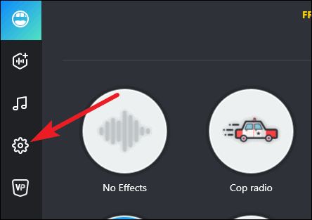 Step 6: If you're not hearing any changes, go to the settings within Voicemod by clicking on the gear icon located on the left side panel.
