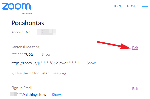 Your Profile will open. Go to your Personal Meeting ID and click on the ‘Edit’ button on its right.