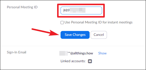An editable textbox will open. Enter the new meeting ID and click on the ‘Save Changes’ option.