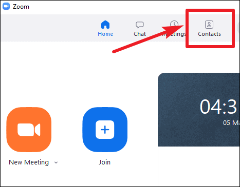 Open the Zoom desktop client and go to the ‘Contacts’ tab from the top of the screen.