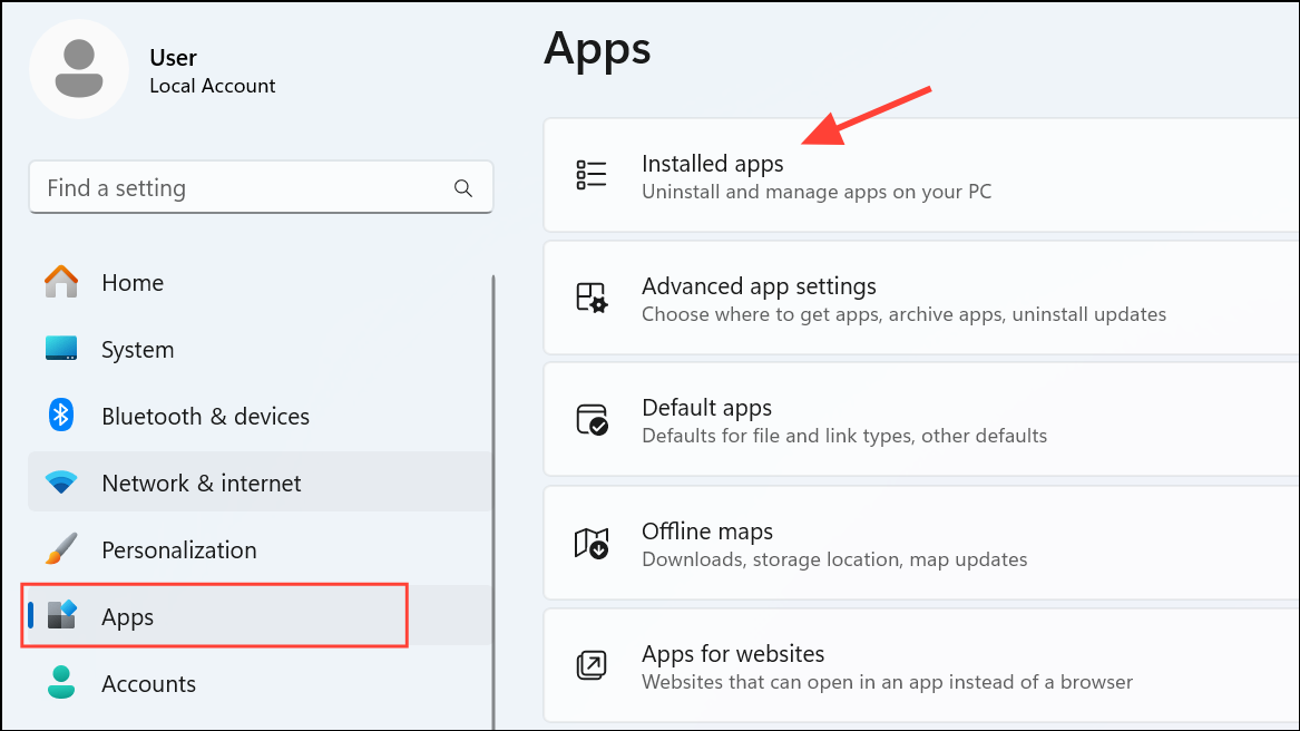 Step 6: After identifying problematic apps, you can take action to reduce battery drain. To do this, navigate back to Settings > Apps > Installed apps.