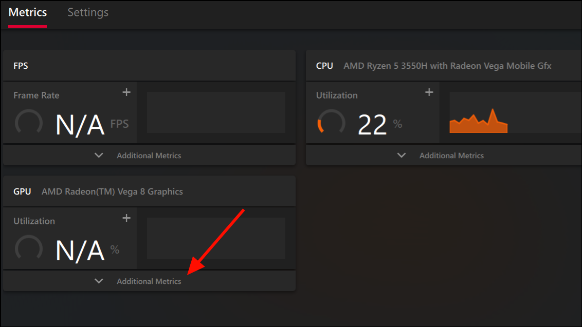 Step 3: Click on 'Additional Metrics' under the GPU section to access detailed information.