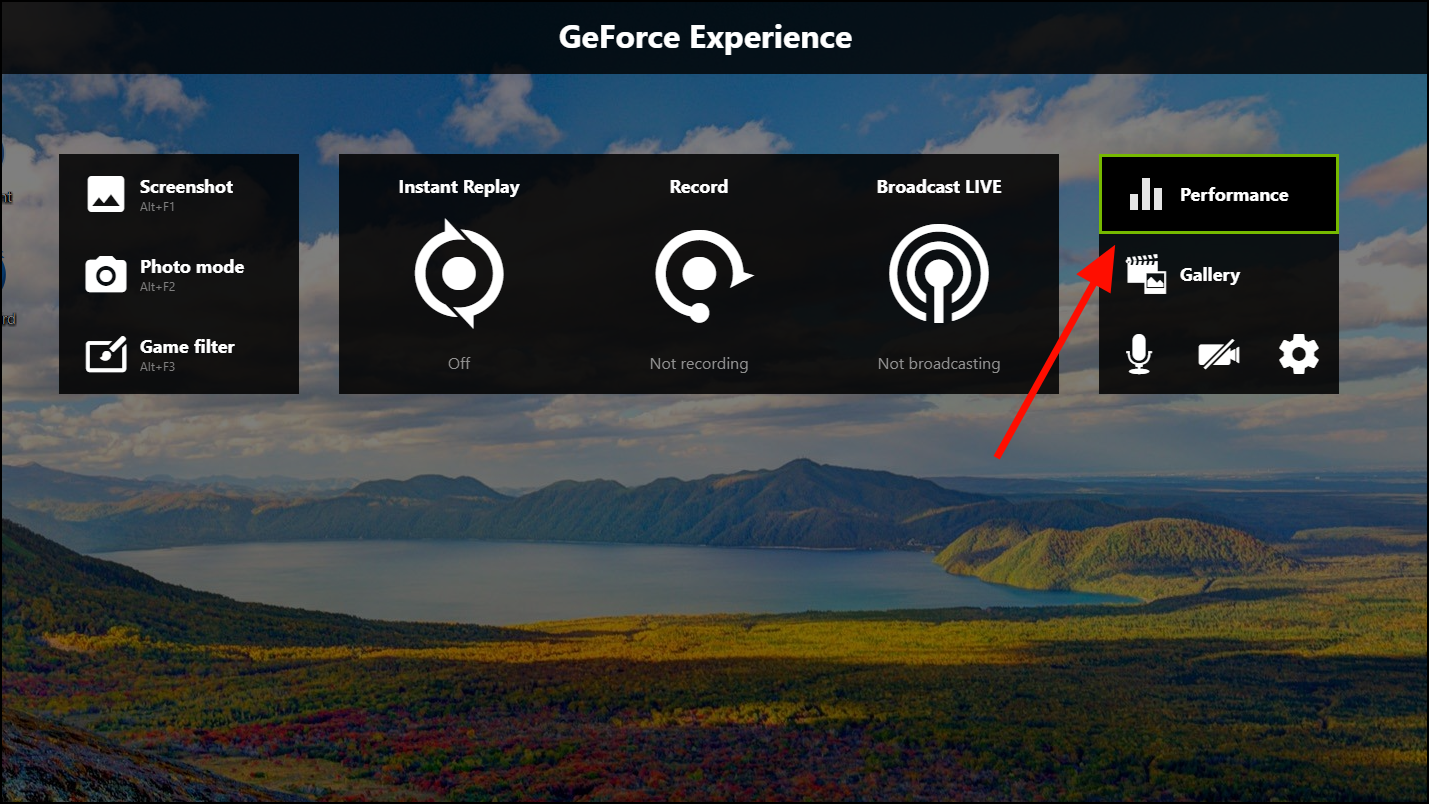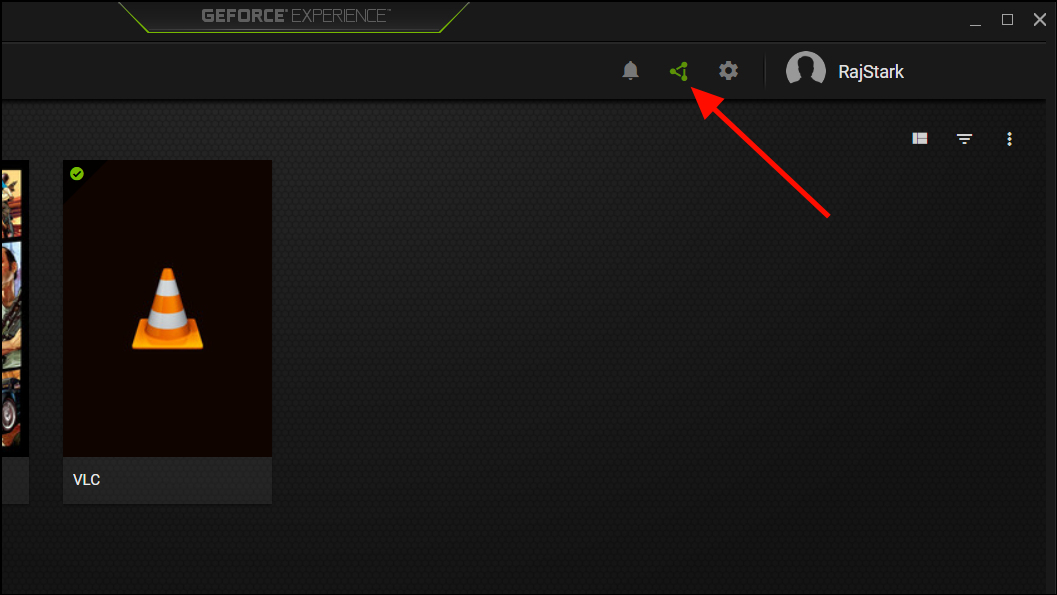 Step 2: Launch GeForce Experience and click on the triangular icon in the top-right corner to open the in-game overlay. You can also press Alt+Z to access it quickly.