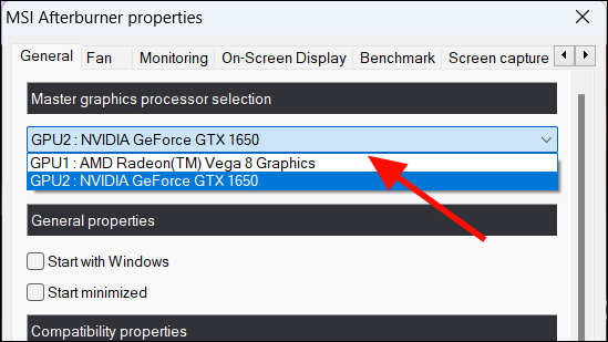 Step 3: In the settings window, select your graphics card from the 'Master graphics processor selection' dropdown menu and click 'Apply'.