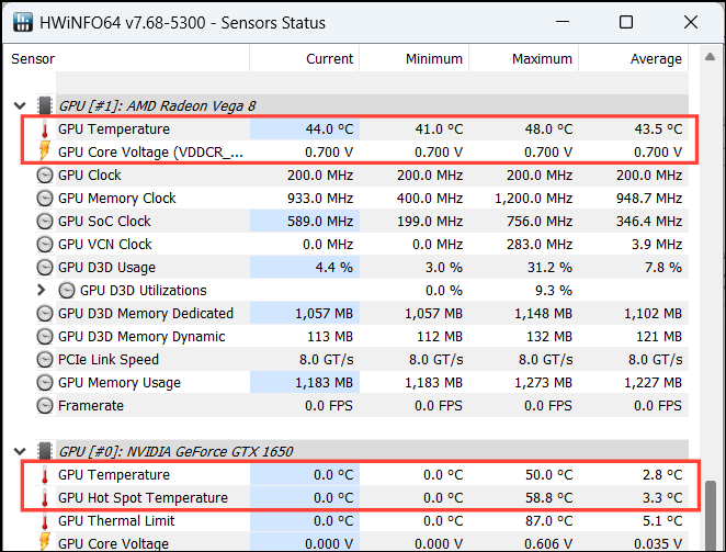 Step 3: Scroll through the list of sensors to locate your GPU. Look for entries labeled 'GPU Temperature' and 'GPU Hot Spot Temperature' to view the current readings.