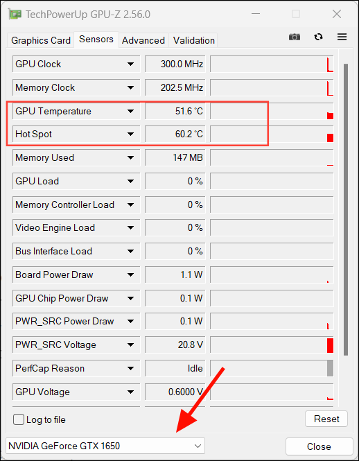 Step 2: Open GPU-Z and switch to the 'Sensors' tab. Here, you can monitor the 'GPU Temperature' and 'Hot Spot Temperature' in real-time. If you have multiple GPUs, select the desired one from the dropdown menu at the bottom.