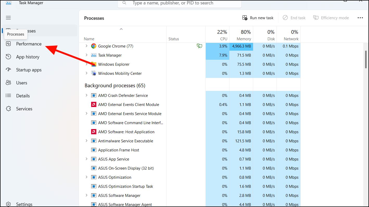 Step 2: Open the software and navigate to the 'Performance' tab located on the top navigation bar.