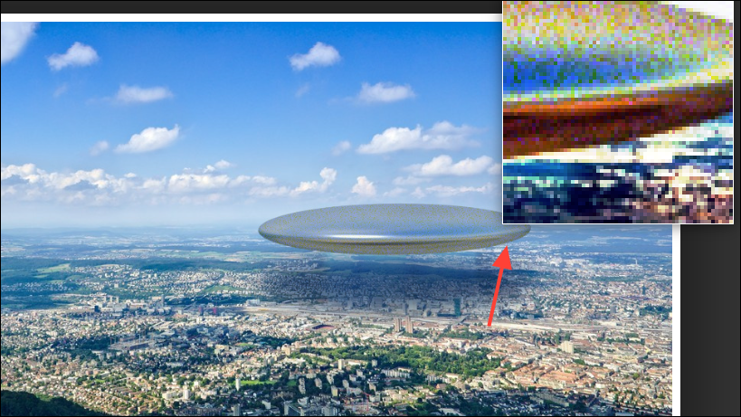 - You will see that the UFO and its shadow will appear in a completely different color compared to the rest of the image. Fake elements will always appear in this manner.