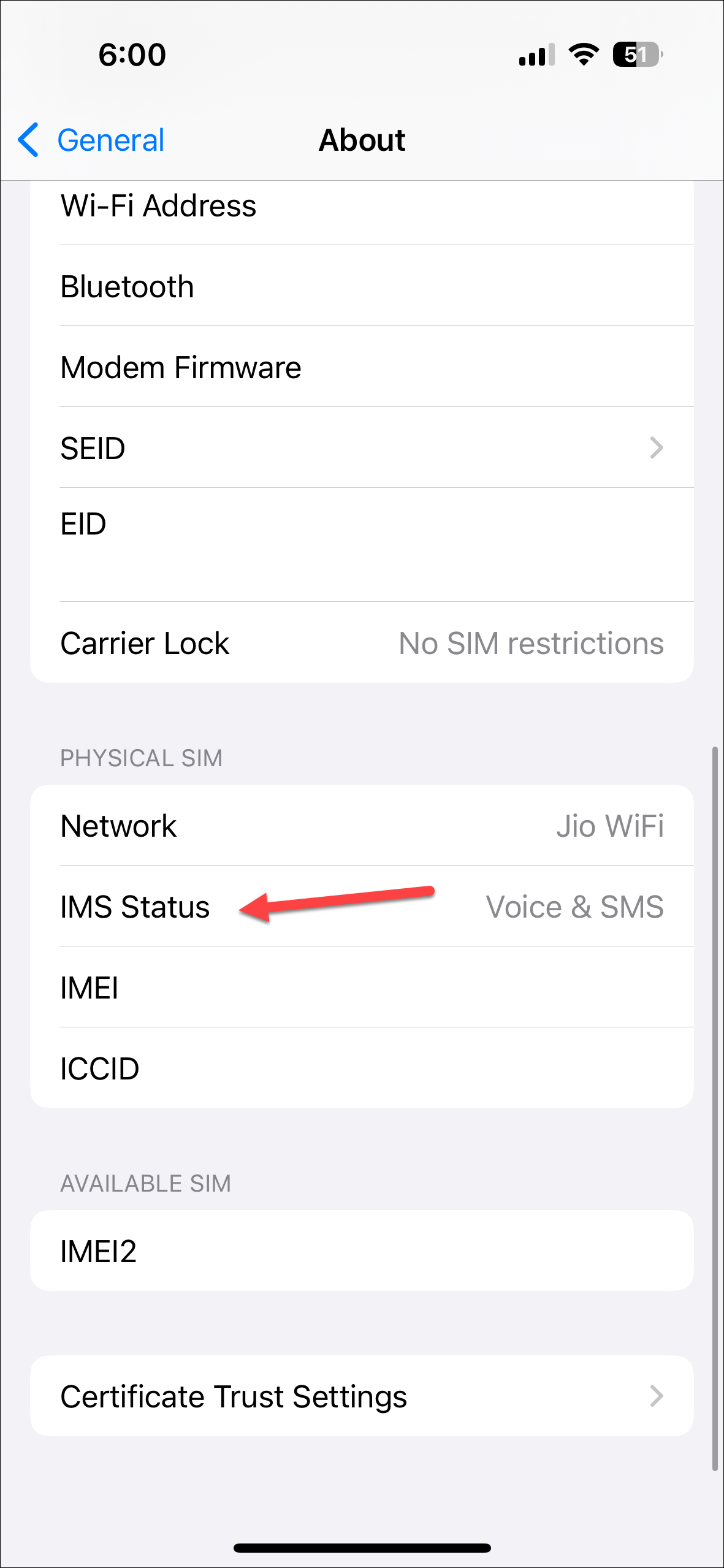 - It'll change to show 'IMS Status'. If your carrier supports RCS, then it'll say 'Voice, SMS & RCS'. Otherwise, it'll only say 'Voice & SMS'.