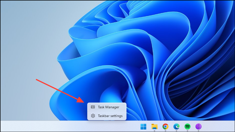 - Right-click on the taskbar on your Windows 11 PC and click on the 'Task Manager' option.