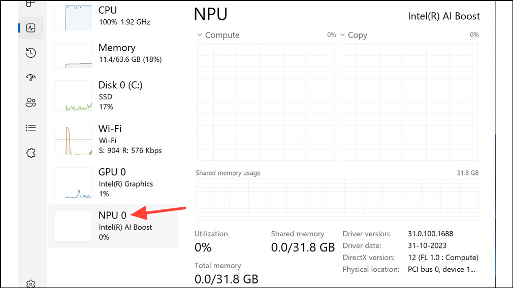 - If an NPU is present on your PC, it will show up here. If you only see CPU (and GPU) present, it means your Windows PC is not AI-enabled.