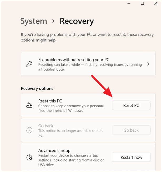 If you're still low on space after trying the above methods, resetting Windows 11 can help. This action reinstalls the operating system, removing all applications and personal files.