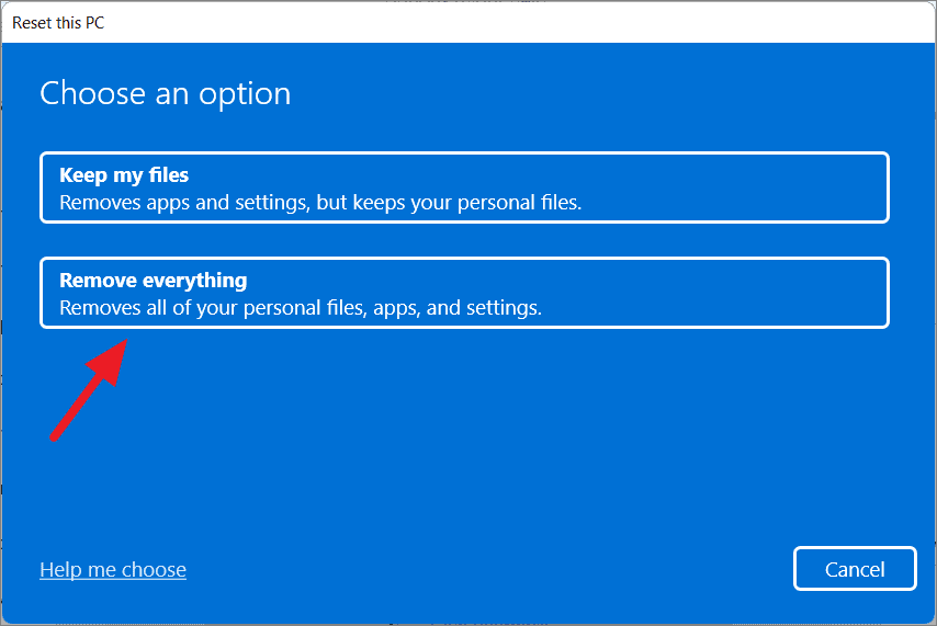 Step 2: Select Remove everything to delete all personal files, apps, and settings.