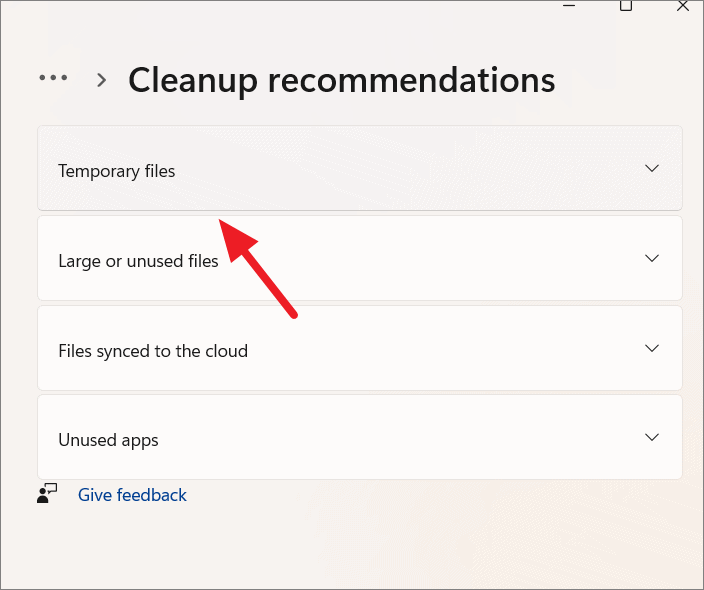 Step 3: Select Temporary files to see a list of files you can safely remove.