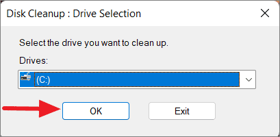 Step 2: Select the drive you want to clean (usually C:) and click OK.
