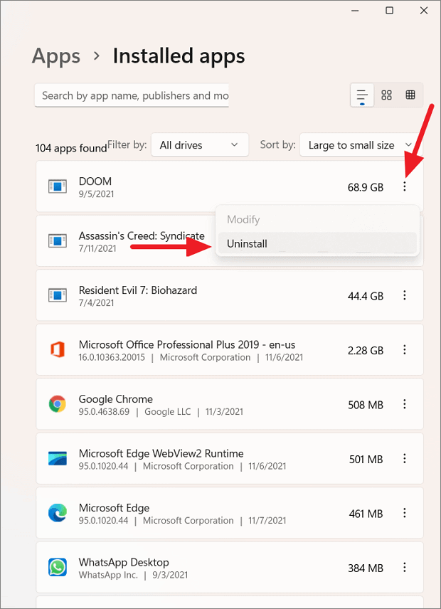 Step 3: Click on the three-dot menu next to an app you wish to remove and select Uninstall.