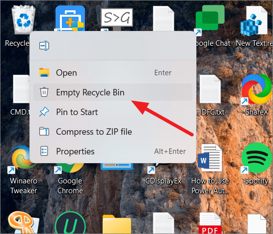 Step 1: Right-click on the Recycle Bin icon on your desktop and select Empty Recycle Bin.