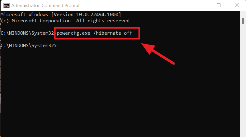 This command disables hibernation and deletes the hiberfil.sys file, freeing up space.