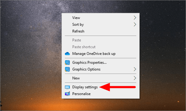 Right-click anywhere on your desktop and select ‘Display Settings’.