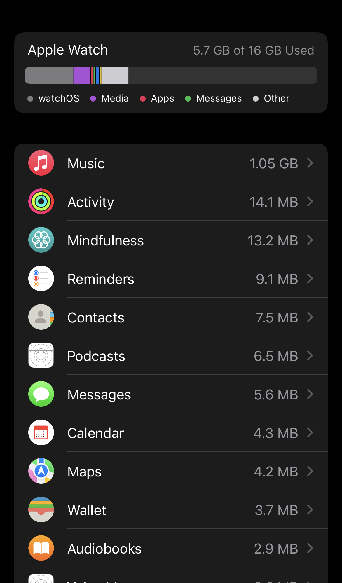 Now, on the next screen, you will be able to see the complete storage details of your Apple Watch.
