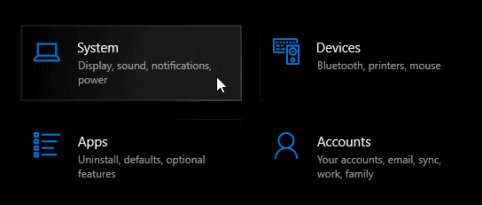 Step 2: In the Settings window, choose the System option from the list of available categories.