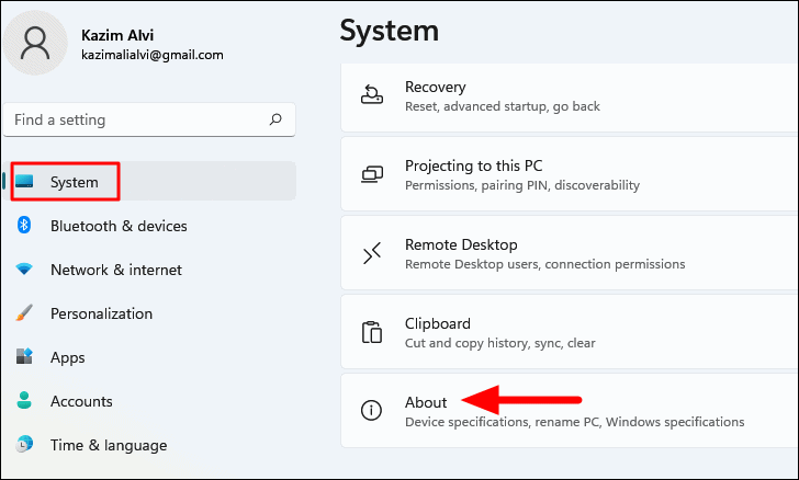 Note: You can quickly access the "About" section by using the Windows + Pause/Break keyboard shortcut.