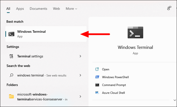 - Click on Windows Terminal to launch it.
