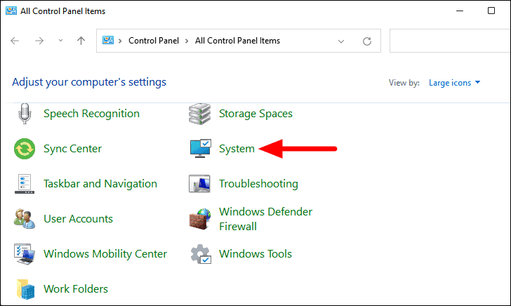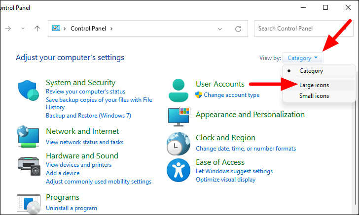 - Click the "View by" dropdown menu and select "Large icons".