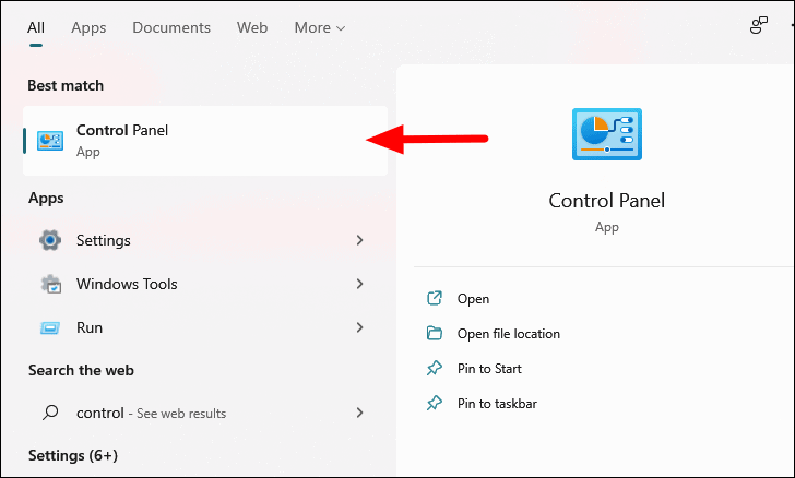 - Open the Start menu and search for "Control Panel".