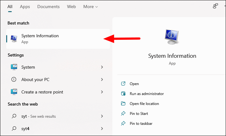 - Click on the System Information app in the search results.