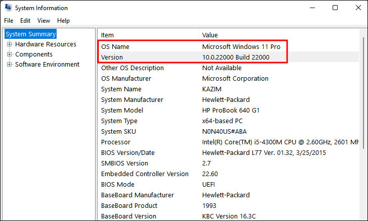 - In the System Information window, you'll see your Windows 11 version listed on the right side.